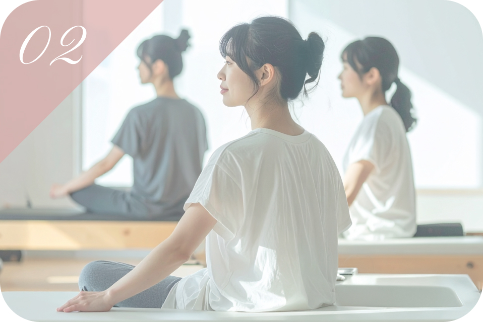 - A もちろん大丈夫です。初心者の方や運動が久しぶりの方でも無理なく始められる内容です。インストラクターが丁寧にサポートします。